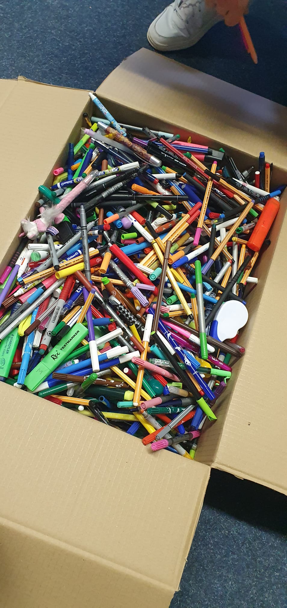 Die Woche über standen dafür Schülerinnen und Schüler des Sozialwesenzweigs in der Aula bereit, um Spenden jeglicher Art entgegenzunehmen und in die eigens angeschafften Umzugskartons zu packen. Dass mitunter der Zusammenbau der Kartons zu Problemen führte, wollen wir nicht weiter ausführen J